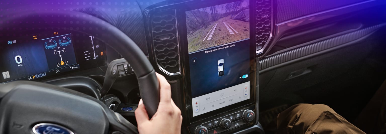 Stepping into the 2024 Ford Ranger's interior is a testament to the seamless blend of comfort, functionality, and modern sophistication Ford is known for. Designed with meticulous attention to detail, the 2024 Ford Ranger's cabin offers a refined and ergonomic space that caters to both the driver and passengers alike. With premium materials adorning the surfaces and thoughtful craftsmanship evident in every detail, the interior exudes an aura of contemporary elegance. Boasting ample legroom and adjustable seating, the 2024 Ford Ranger ensures a comfortable and accommodating ride, whether for a long-haul journey or a short city commute. Equipped with the cutting-edge SYNC® 4A infotainment system, which includes a user-friendly touchscreen interface, advanced navigation system, and seamless smartphone integration, the 2024 Ford Ranger's interior is not just a space for travel, but a hub of connectivity and convenience. The 360-degree camera, Active Park Assist 2.0, and Ford Co-Pilot360® deftly complement the available 12-inch digital cluster for a combination of driver-assist technology and accessibility.