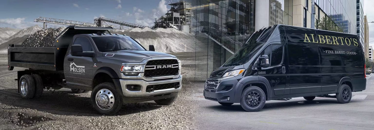 Ram differentiates itself with its dedication to your commercial success. Not only does Ram offer a lineup of vehicles suitable for heavy-duty work, but it also provides the systems to help make your business run smoothly. Consult Ram to find the vehicles for your professional needs, whether it’s a Ram truck, the Ram Chassis Cab, or the Ram ProMaster work van. You can customize your Ram with unique exterior graphics and a customizable configuration option with the Ram ProMaster. Ram’s Body Builder’s Guide provides the resources to optimally upfit your Ram with commercial equipment manufacturers and installers. You can even save with tax benefits available on select Ram Commercial vehicles on your federal tax return. With many different resources available to set your company up for success, Ram is undoubtedly a partner you’ll appreciate in your commercial endeavors.